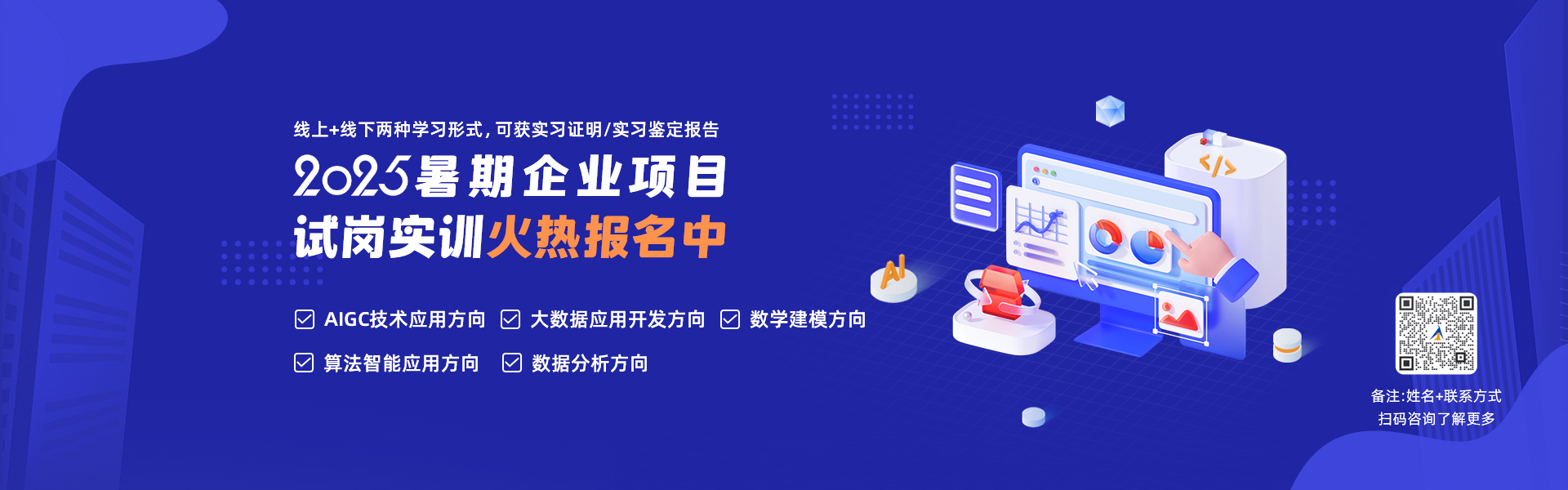 授課類型多樣,包含師資培訓(xùn)、校內(nèi)實(shí)訓(xùn)、在線實(shí)習(xí)、高薪就業(yè)培訓(xùn)、企業(yè)內(nèi)訓(xùn)、省培國(guó)培;開(kāi)展形式豐富,包括線上遠(yuǎn)程教學(xué)、線下集中面授等方式,解決不同人群的學(xué)習(xí)需求。